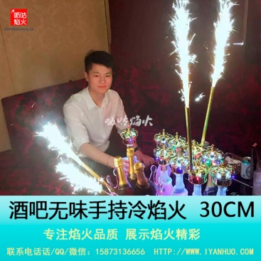 本产品针对酒吧慢摇吧KTV专用蛋糕烟花,酒吧冷焰火,路引烟火,手持烟火,无烟无味冷焰火,燃放火焰白,温度低适合室内燃放.